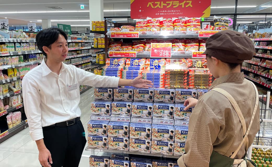 私はお客様と直接お会いする機会は少ないですが、間接的に貢献できると考えています。例えば、商品が通路にはみ出して歩きにくい売場を改善し、お客様が快適にお買い物できる空間を作ること。